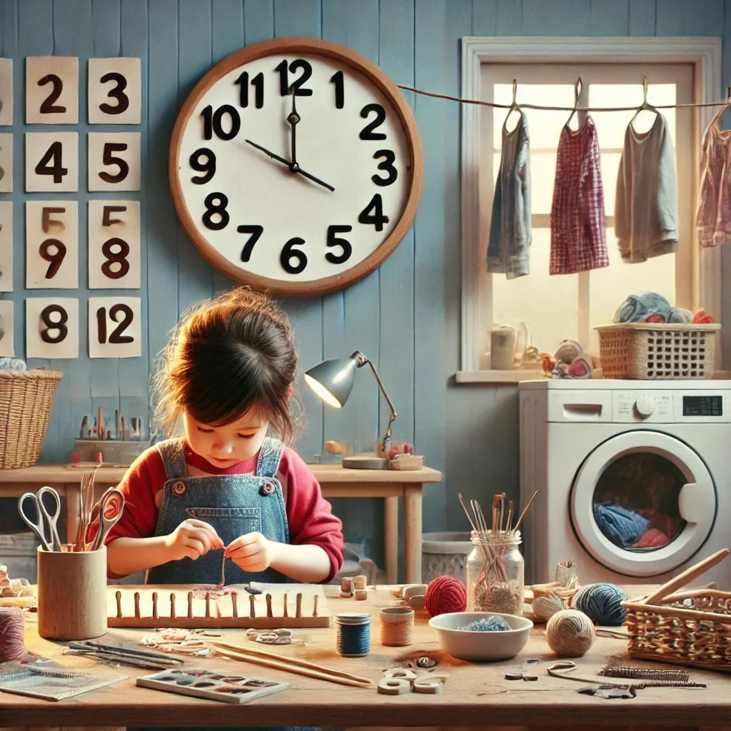 In the EVOLVE stage, children continue to follow their daily schedules while taking on new projects based on their interests, such as creating art, helping with meals, or organizing household chores. Projects are designed to match their abilities, encouraging participation in family tasks like laundry, grocery shopping, and cleaning. Practical learning is introduced, such as recognizing numbers (0–9) and using basic math skills through a calculator, alongside developing literacy skills based on their interests. For example, if a child loves cars, the focus might begin with recognizing and writing the word "CAR," followed by related concepts like "WHEELS" and "ROAD." This stage helps children gain confidence, express their strengths, and engage in more complex tasks, setting them up for further success.